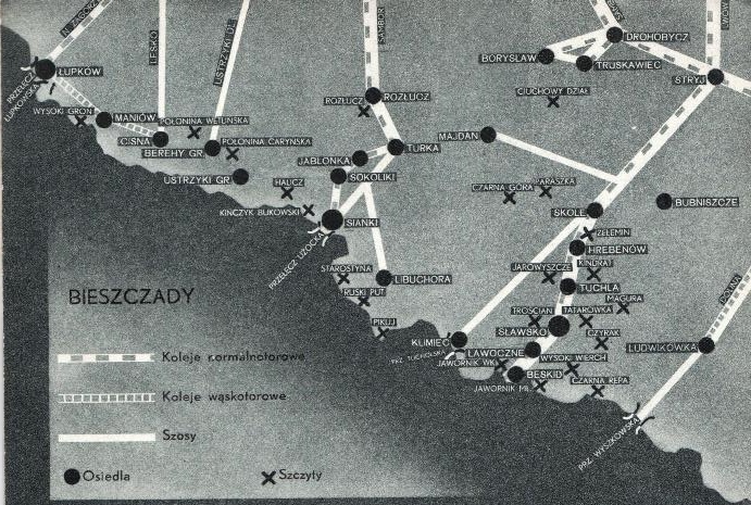 Narciarstwo w Karpatach / Bieszczadach reklamowało wiele wydawnictw Towarzystwa Krzewienia Narciarstwa, firmy Orbis i innych. Przykładem mogą być wydawane w różnych językach foldery i książki „Zima w Polsce”. Różnorodność oferty narciarskiej i mnogość dostępnych ośrodków narciarskich w Karpatach wyobrazić sobie można na podstawie przedwojennej mapy: