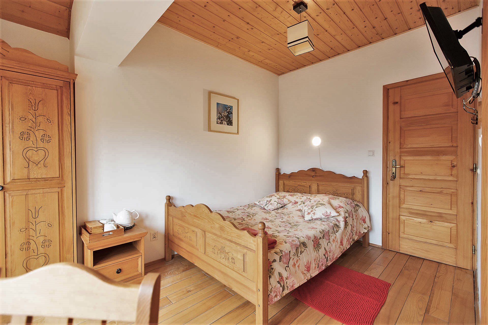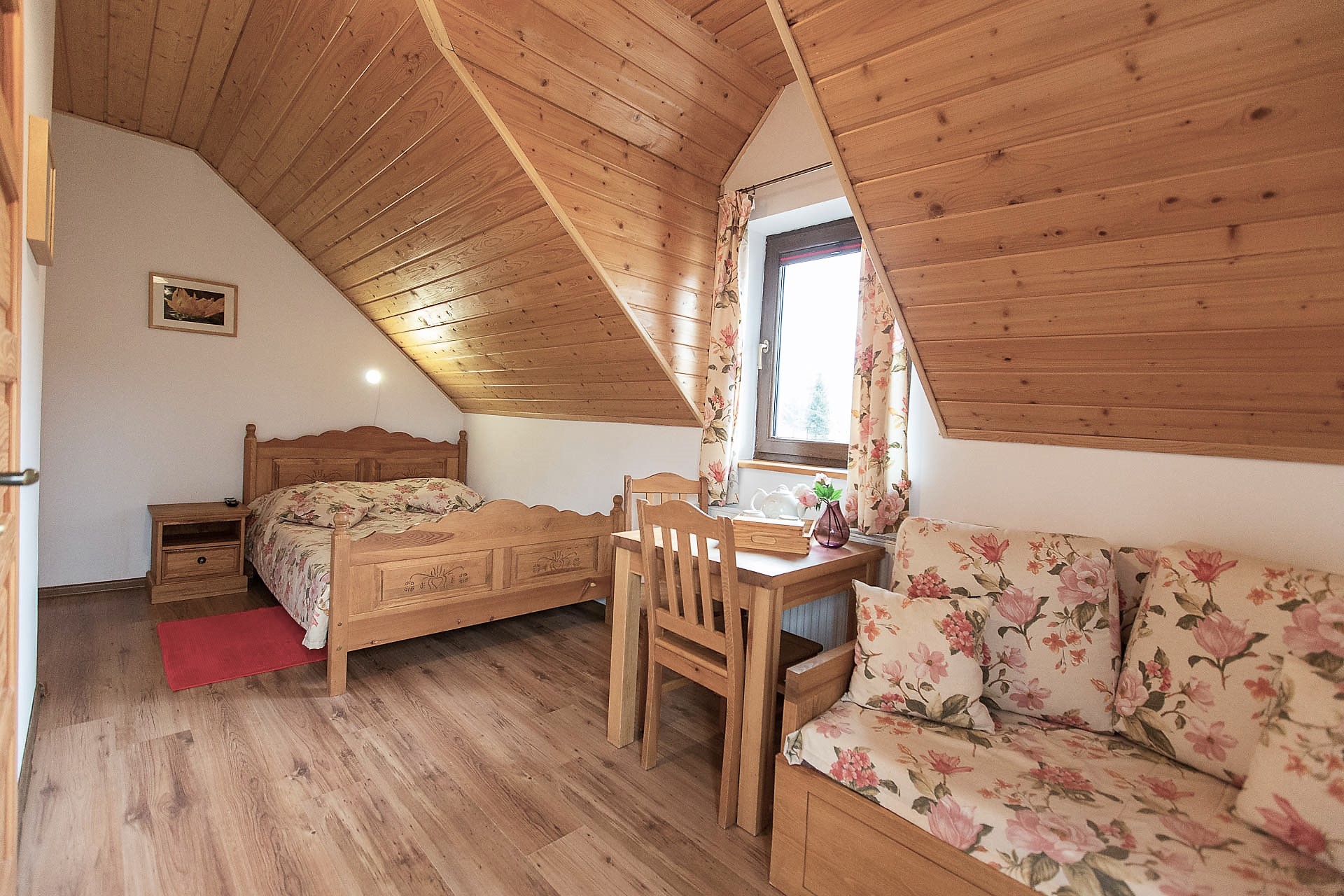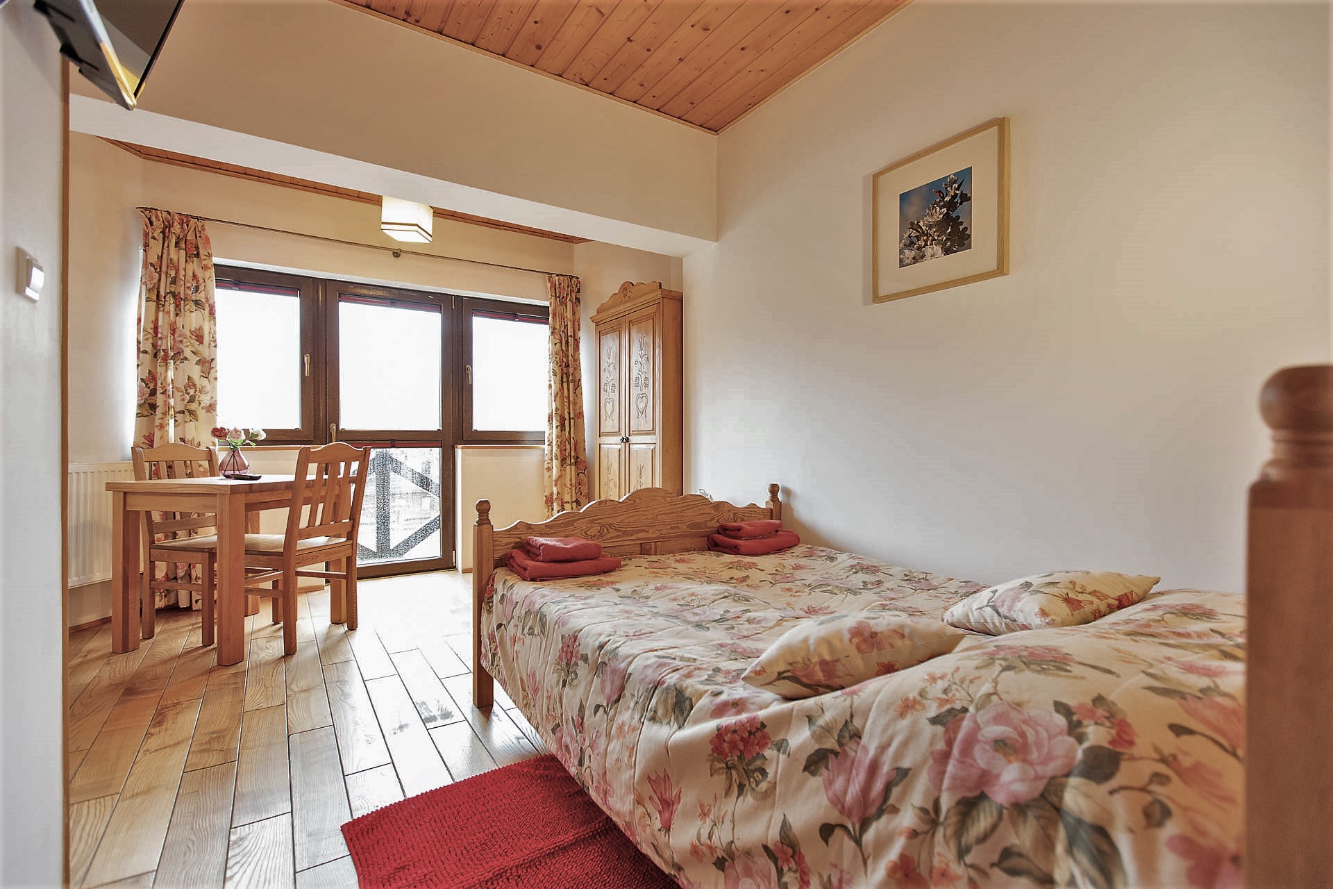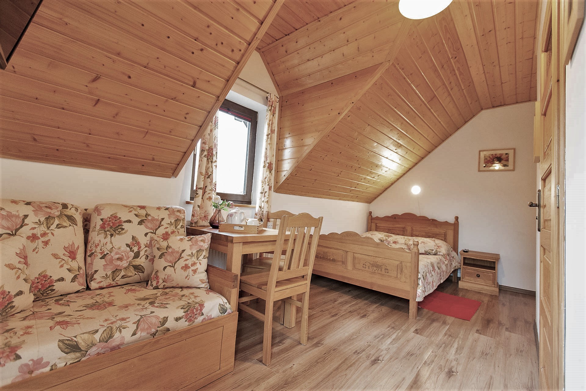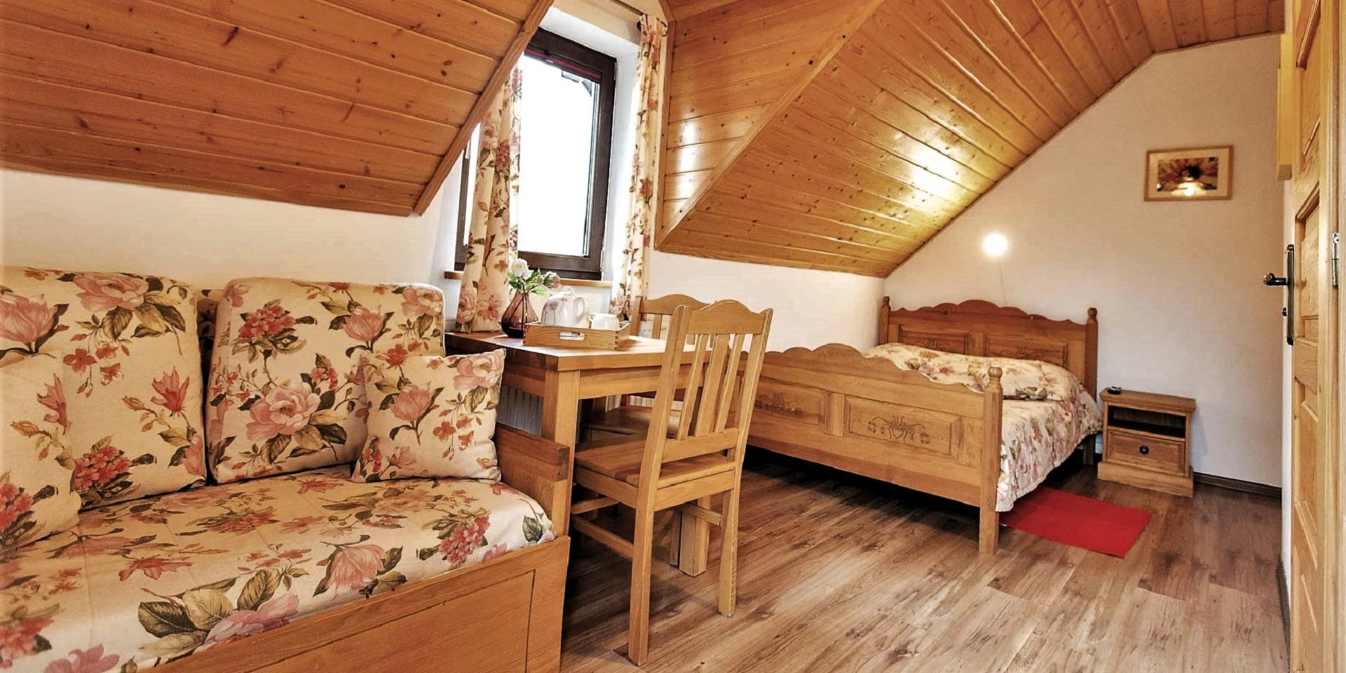 W Domu Gościnnym jednorazowo możemy gościć 20 osób w trzech segmentach z osobnymi wejściami. Proponujemy jeden pokój 1-osobowy, 2 pokoje 2-osobowe oraz 5 pokoi 3-osobowych z urokliwym widokiem na górski krajobraz. Istnieje możliwość wynajmu poszczególnych pokoi, segmentów lub całego Pensjonatu. Wszystkie pokoje posiadają łazienki, są wyposażone w telewizor z płaskim ekranem, czajnik elektryczny z zapasem kawy oraz herbaty.