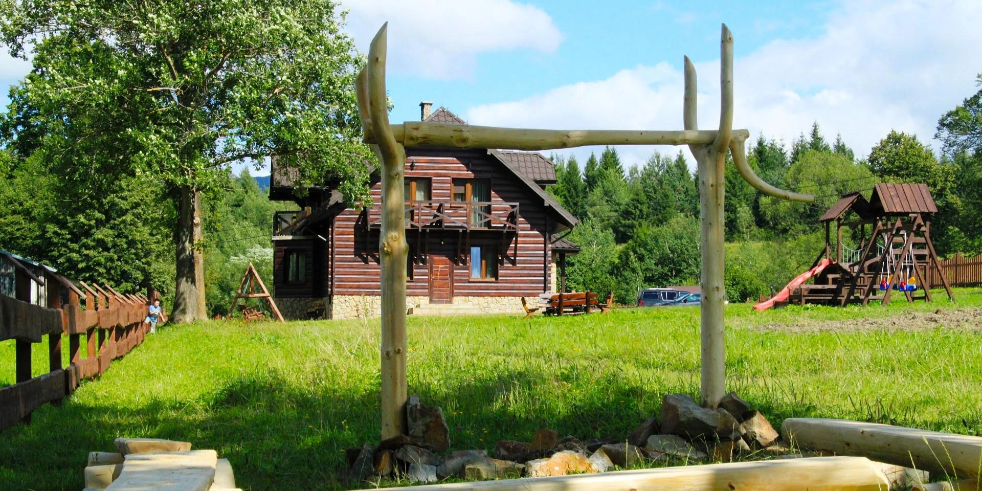 Pensjonat zlokalizowany jest na przestronnej działce otoczonej urokliwą łąką oraz wzgórzami. Znajduje się w Strzebowiskach zwanych najpiękniejszą wsią Bieszczadów.